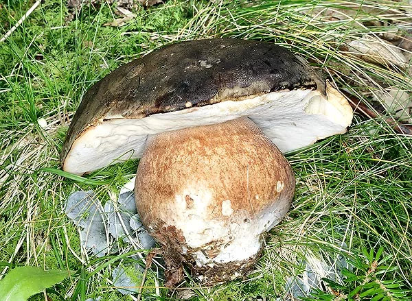 Foten är kraftig och klubbformad med ett tydligt, ljust nätmönster nära hatten. Den är vit till ljusbrun och står i stark kontrast mot den mörka hatten. Doften är mild, smaken nötliknande och mycket uppskattad i matlagning.